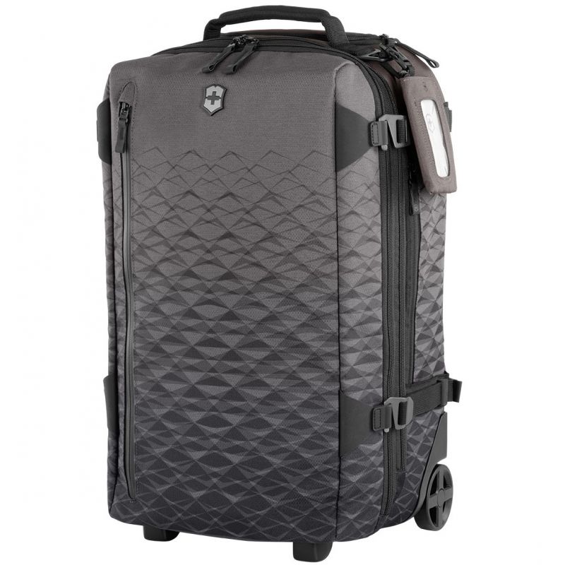 Мобильный и практичный чемодан-рюкзак на колесах Victorinox Travel Vx Touring/Anthracite 604322 – гибрид нового поколения из серии Vx Touring (Тьюринг) от мировой торговой марки Victorinox (Швейцария). Текстильный корпус легко трансформируется из рюкзака в чемодан на 2-х колесах. Масштабируемая конструкция оптимизирует упаковывание багажа. Размеры идеальны для непродолжительных поездок и подходят в качестве ручной клади в большинстве авиакомпаний.
