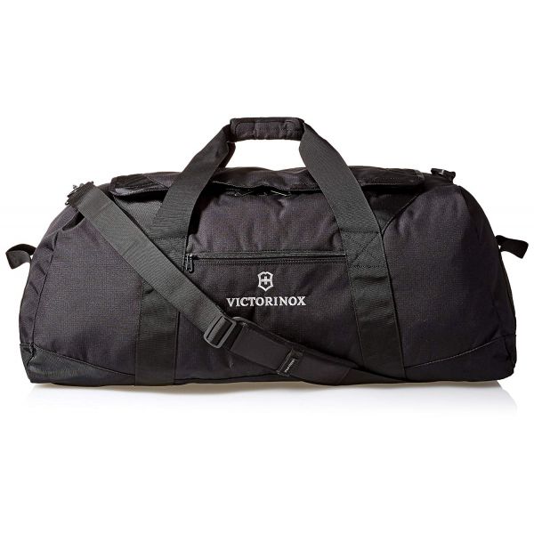 Замечательным бонусом будет цветовая гамма дорожной сумки, ведь она имеет универсальный черный цвет, который скроет все возможные загрязнения. Стильный, но при это сдержанный дизайн сумки подчеркивает изображение логотипа и брендированная надпись Victorinox на лицевой панели. А внушительные размеры, составляющие 33x81x38 см, позволяют перевозить даже самый габаритный багаж.