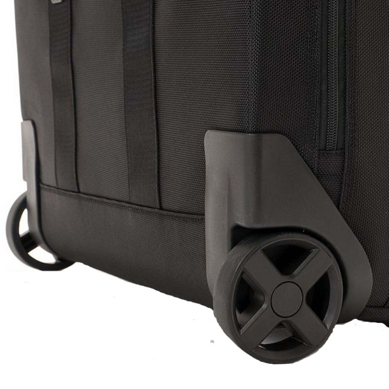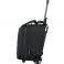 Модель оптимизирована легкой телескопической ручкой из алюминия, фиксируемой в нескольких позициях с помощью кнопки. Ручку можно сложить в специальный отсек на молнии вдоль спинки. Колесная система представлена двумя надежными колесами и устойчивыми ножками-упорами.