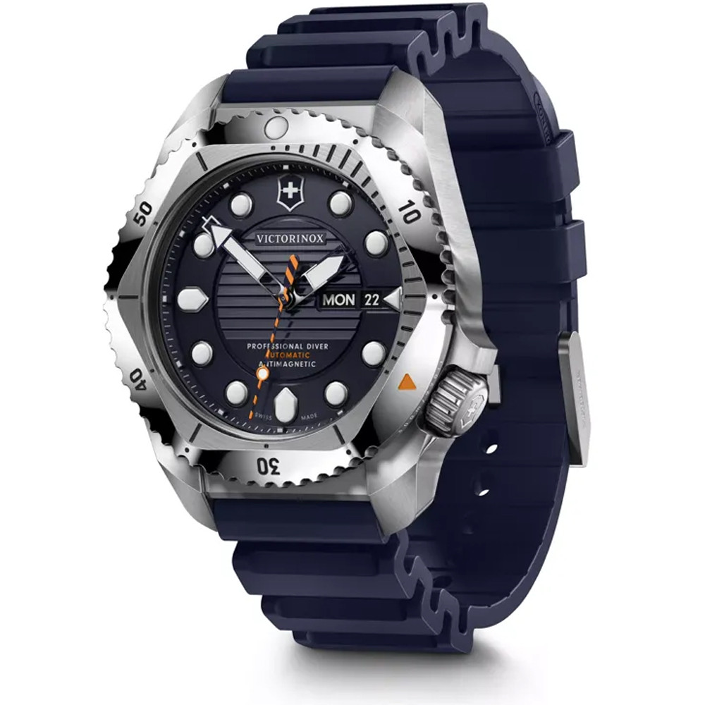 Victorinox Dive Pro — это часы для всех, кто ищет производительность, точность и совершенство в профессиональной и повседневной жизни. Каждые из этих дайверских часов протестированы на водонепроницаемость до 300 метров и выдерживают песок, грязь, удары и вибрацию. В соответствии с нормами дайвинга, ударопрочность и антимагнитная защита позволяют избежать неточности времени. Коллекции часов премиум-класса Victorinox проектируют, разрабатывают, тестируют и производят в Делемоне - в самом сердце швейцарского часового региона.