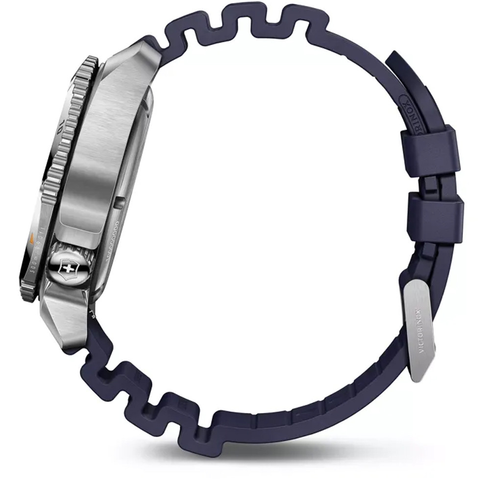 Victorinox DIVE PRO Automatic – автоматические дайверские часы из стали на темно-синем резиновом ремешке. Профессиональные часы для дайвинга швейцарского производства, сертифицированные по стандарту ISO 6425 и водонепроницаемые до 300 м. Смещенная к позиции «на 4 часа» заводная головка для удобства использования в перчатках. И не забываем об автоматическом механизме Sellita с 38-часовым запасом хода, который используется в люксовых часах. Заводится как колебаниями руки, так и вручную.
