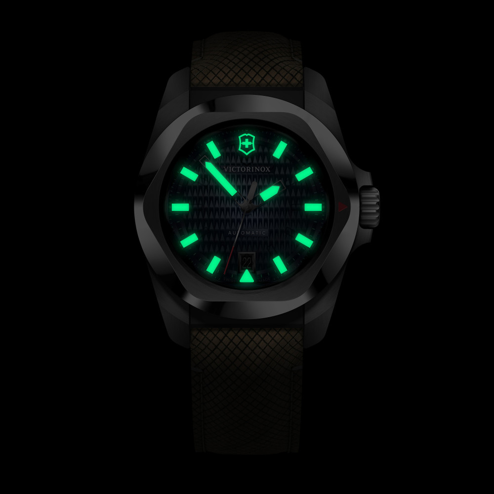 I.N.O.X. (Айнокс) — серия ударопрочных и водонепроницаемых швейцарских часов с отличительным дерзким дизайном безеля. Серьезные часы с минималистичным и легко читаемым циферблатом. Автоматические модели, в отличии от кварцевых, обладают немного меньшим размером корпуса (41 против 43 мм). Все стальные часы семейства I.N.O.X. Automatic отдают дань уважения культовому Swiss Army Knife, переосмысливая популярный узор Alox, хорошо известный элемент накладок карманного ножа, для украшения циферблата. Крепление ремешков к корпусу позволяет быстро менять ремешки за считанные секунды без использования специализированных инструментов. Сегодня часы Victorinox проектируют, изготавливают и тестируют на их собственном заводе в Делемоне, Швейцария.
