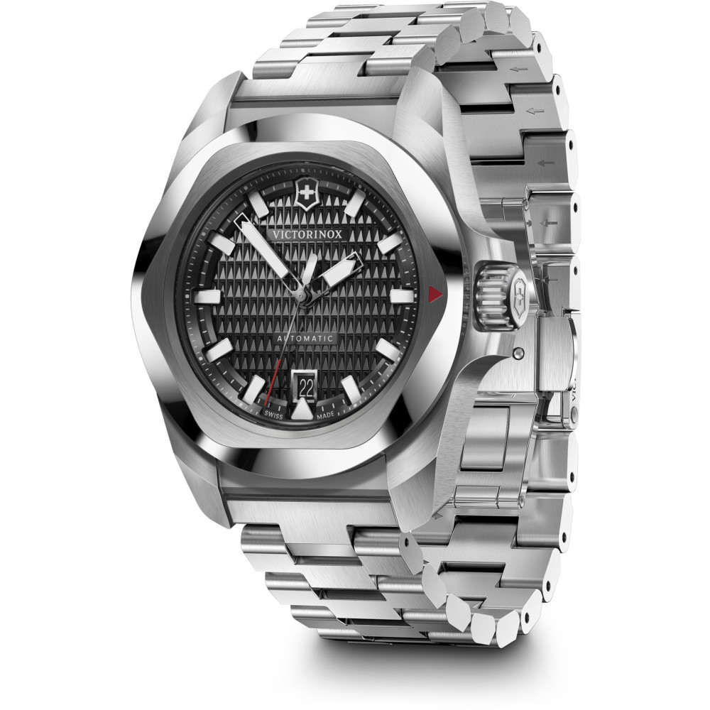 I.N.O.X. (Айнокс) — серия достаточно массивных, серьезных спортивных часов с очень минималистичным и легко читаемым циферблатом. Автоматические модели, в отличии от кварцевых, обладают немного меньшим размером корпуса (41 против 43 мм). Все стальные часы семейства I.N.O.X. Automatic отдают дань уважения культовому Swiss Army Knife, переосмысливая популярный узор Alox, хорошо известный элемент накладок карманного ножа, для украшения циферблата. Мужественный стальной браслет, заменяемый без инструментов, с раскладывающейся застежкой. Сегодня все часы Victorinox проектируют, изготавливают и тестируют на их собственном заводе в Делемоне, Швейцария.
