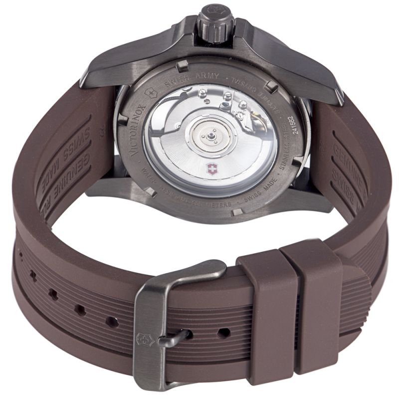 Профессиональная степень водонепроницаемости - до 50 АТМ (500 м). Подходит даже для глубоководного дайвинга. Задняя крышка толщиной 2,8 мм имеет, как и заводная головка, завинчивающуюся конструкцию, что гарантирует предотвращение попадание влаги внутрь механизма. С корпусом из высококлассной нержавеющей стали 316L Вы будете спокойны за ударопрочность и сопротивляемость к коррозии. Нержавеющая сталь Викторинокс замечательно противостоит воздействию воды и влаги, что позволяет использовать ее даже в моделях для дайверов. Из этого же металла изготовлены заводная коронка, задняя крышка и пряжка. Кроме всего прочего, такой металл обладает гипоаллергенными свойствами.