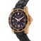 Черный рельефный циферблат замечательно сочетается с полированной индикацией золотистого цвета и черным дайверским безелем. Для максимально удобного считывания дополнен шкалой военного времени (24 часа), а также 60-минутной разметкой на ободке.