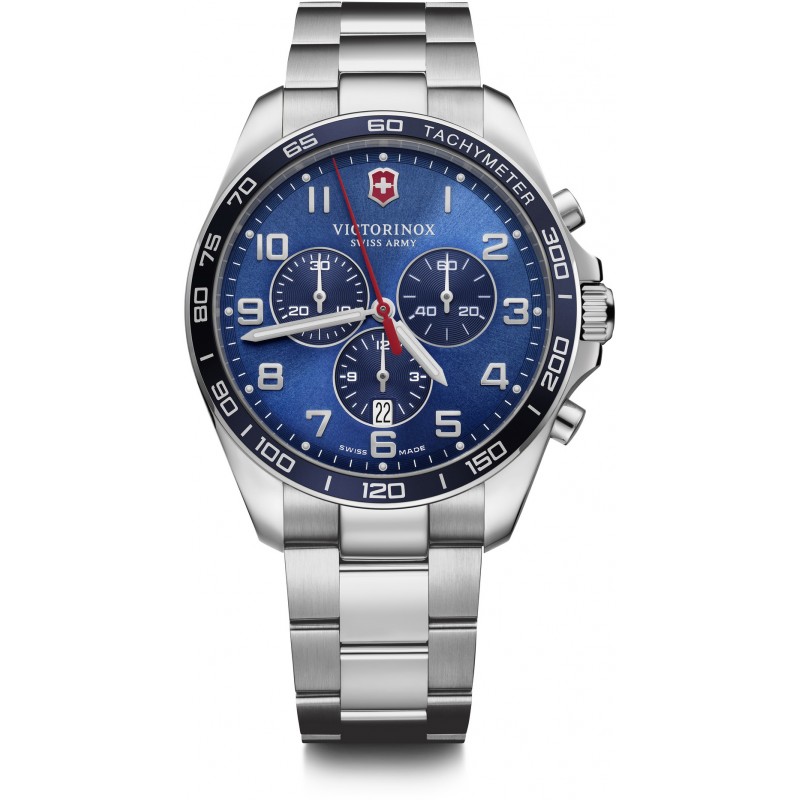 Victorinox Swiss Army FIELDFORCE Classic Chrono мужские часы-хронограф / кварцевые / синий циферблат / на стальном браслете / 100м / Сапфировое антибликовое стекло / Стальной корпус / 42мм 241901 Швейцария Гарантия: 5 лет