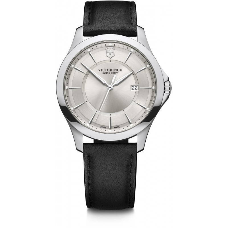 Victorinox Swiss Army ALLIANCE мужские кварцевые часы / серебристый циферблат / черный кожаный ремешок / 100м / Сапфировое антибликовое стекло / стальной корпус - 40мм Швейцария 241905 Гарантия: 5 лет