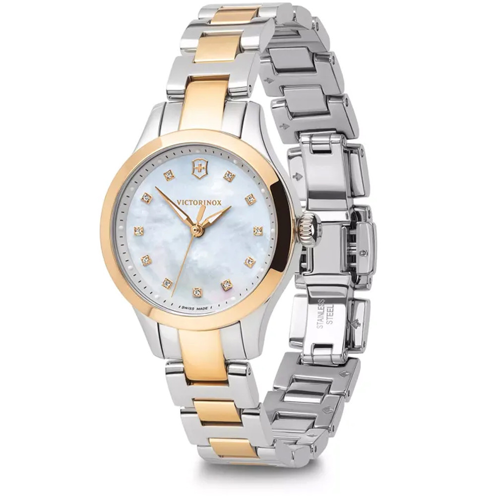 Victorinox Swiss Army ALLIANCE XS женские часы / кварцевые / перламутровый циферблат с 11 Swarovski / на стальном браслете / 100м / Сапфировое антибликовое стекло / Стальной корпус-28мм 241877 (Швейцария) Гарантия: 5 лет