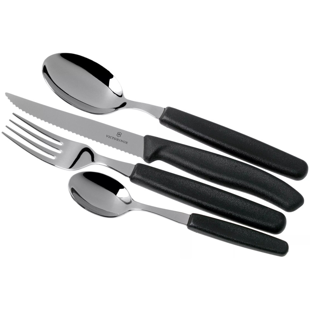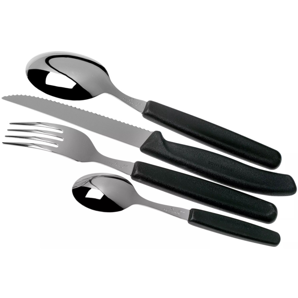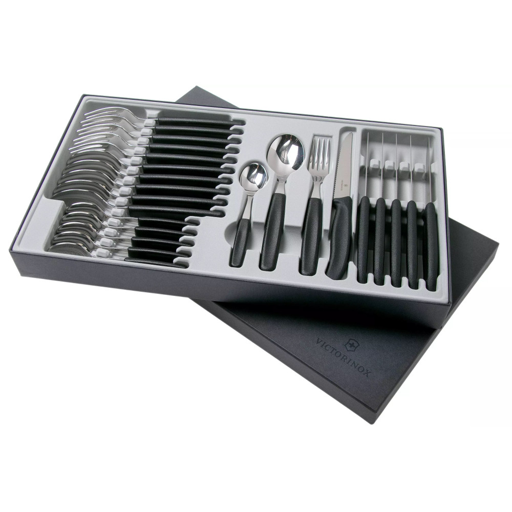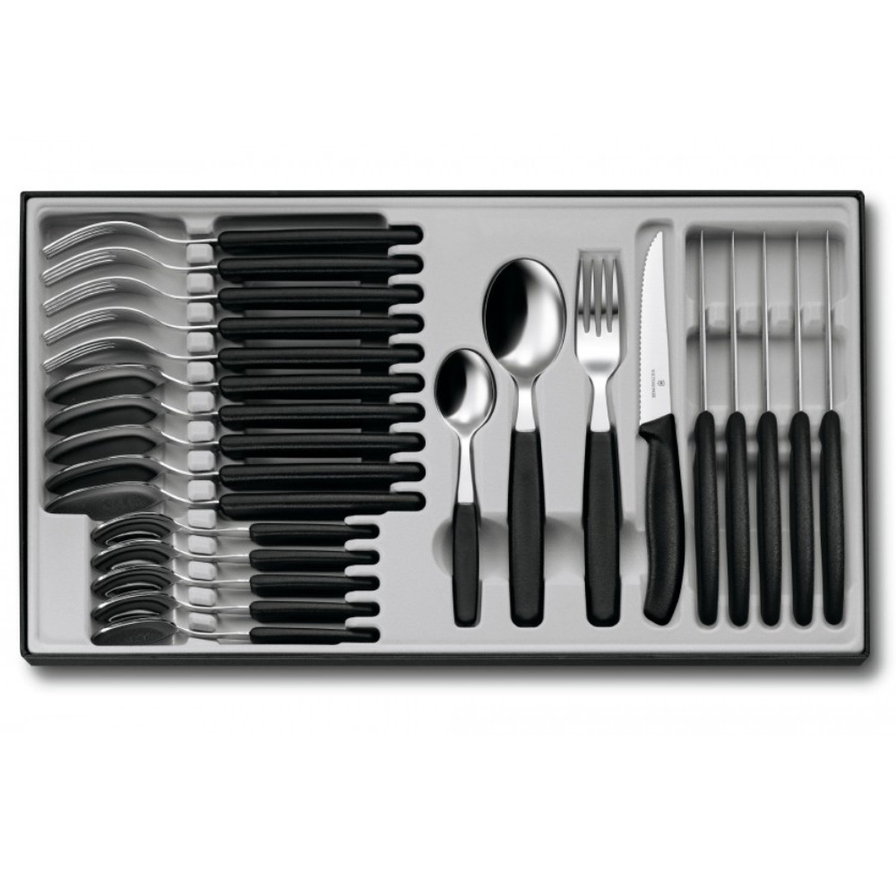 Набор столовых приборов SWISS CLASSIC Table Set 24 предмета с черными ручками (6 ножей, 6 вилок, 6 ложек, 6 чайных ложек) Victorinox 6.7233.24 Швейцария