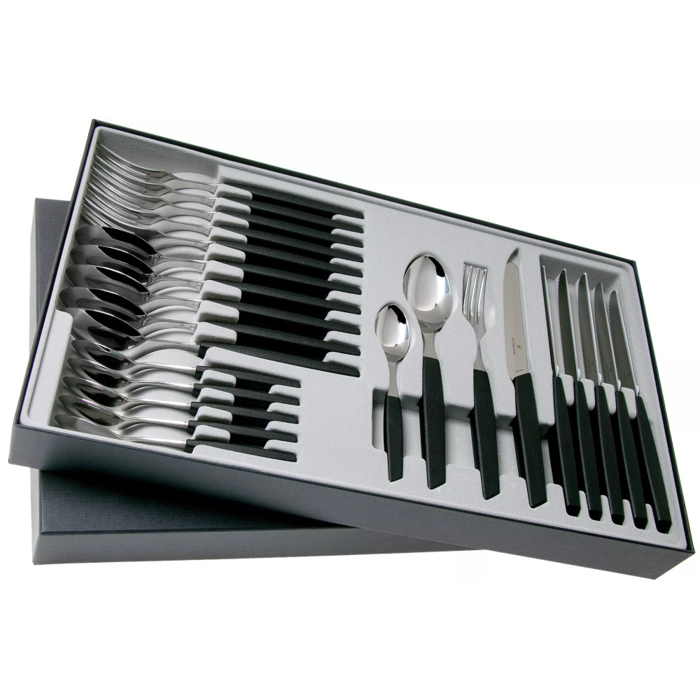 Набор столовых приборов Swiss Modern Table Set: 24 предмета с черной ручкой (6 ножей steak,6 вилок, 6 столовых ложек, 6 чайных ложек) 6.9093.12W.24