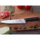 Эргономичная форма рукоятки с нескользкой фактурой. Изготовлена из износопрочного материала шероховатого на ощупь. Термоэластопласт – это вулканизированная резина, поэтому по сравнению с пластиком стойкая к ударам, высоким температурам и значительно удобнее при длительной эксплуатации. Нож можно мыть в посудомойке и стерилизовать. Все примененные материалы безвредны для здоровья человека. Все материалы прошли сертификацию NSF.