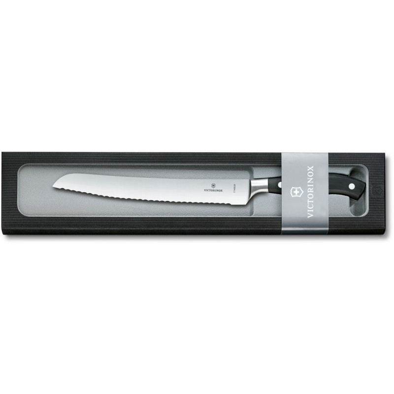 Кованый нож для хлеба Grand Maitre Bread с лезвием 23 см (серрейтор) и черной ручкой (подарочная коробка) Victorinox 7.7433.23G Швейцария
