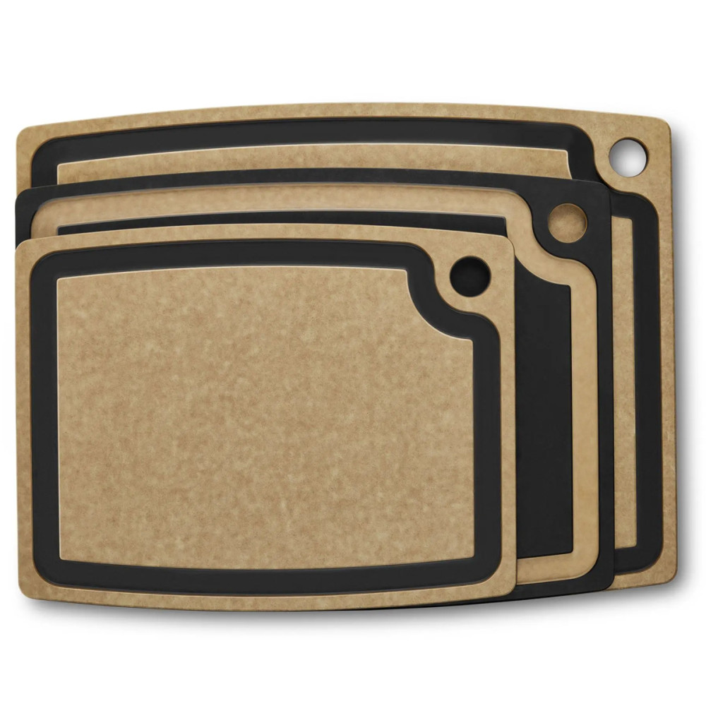 Victorinox Epicurean Gourmet Cutting Board S [7.4128; Коричневая] – маленькая разделочная доска с канавкой для сока. Элегантный и невероятно прочный двухцветный дизайн из экологически чистого бумажного композита. Выносливый инновационный материал, который защитит также вас от попадания частиц микропластика в еду.