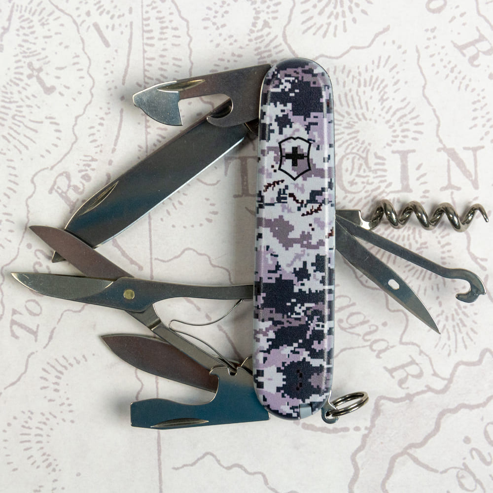 Эксклюзивный складной нож Victorinox CLIMBER ARMY 91мм/14 функций/штопор/ножницы/крюк /Пиксель серо-синий (Швейцария) Гарантия: пожизненная