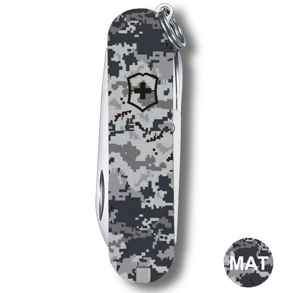 Victorinox CLASSIC SD ARMY Пиксель синий с Лого - крошечный складной нож-брелок 58 мм на 7 функций с матовыми накладками в расцветке пикселя серого-синего цвета. Многофункциональный, невероятно компактный и украинский дизайн с пикселем - все в этом ноже делает его знаковым дополнением в вашу коллекцию карманных ножей Викторинокс. Удобно носить его всегда с собой на связке ключей, в сумке или кармане. Культовый дизайн и выверенная годами практичность с популярными и востребованными каждый день функциями. Отрезать, нарезать, подкрутить винт или привести в порядок ногти - это только маленькая часть того, что вы сможете делать с вашим новым помощником. Прекрасный вариант высококлассного презента военным и всем поклонникам швейцарских армейских ножей.