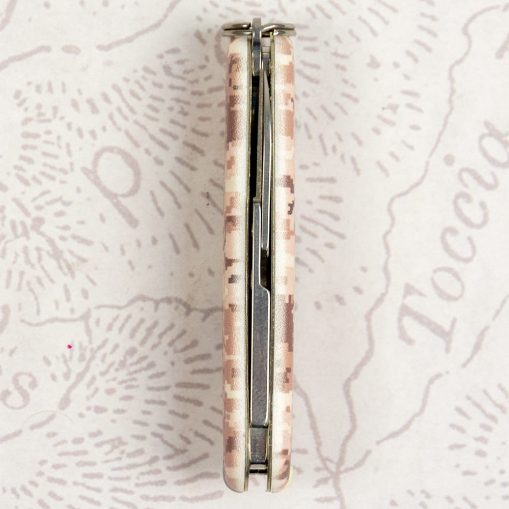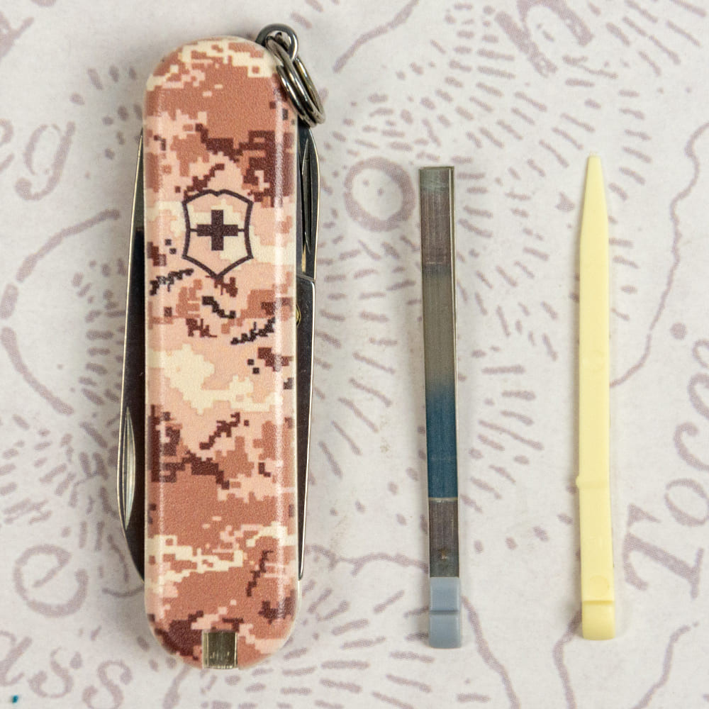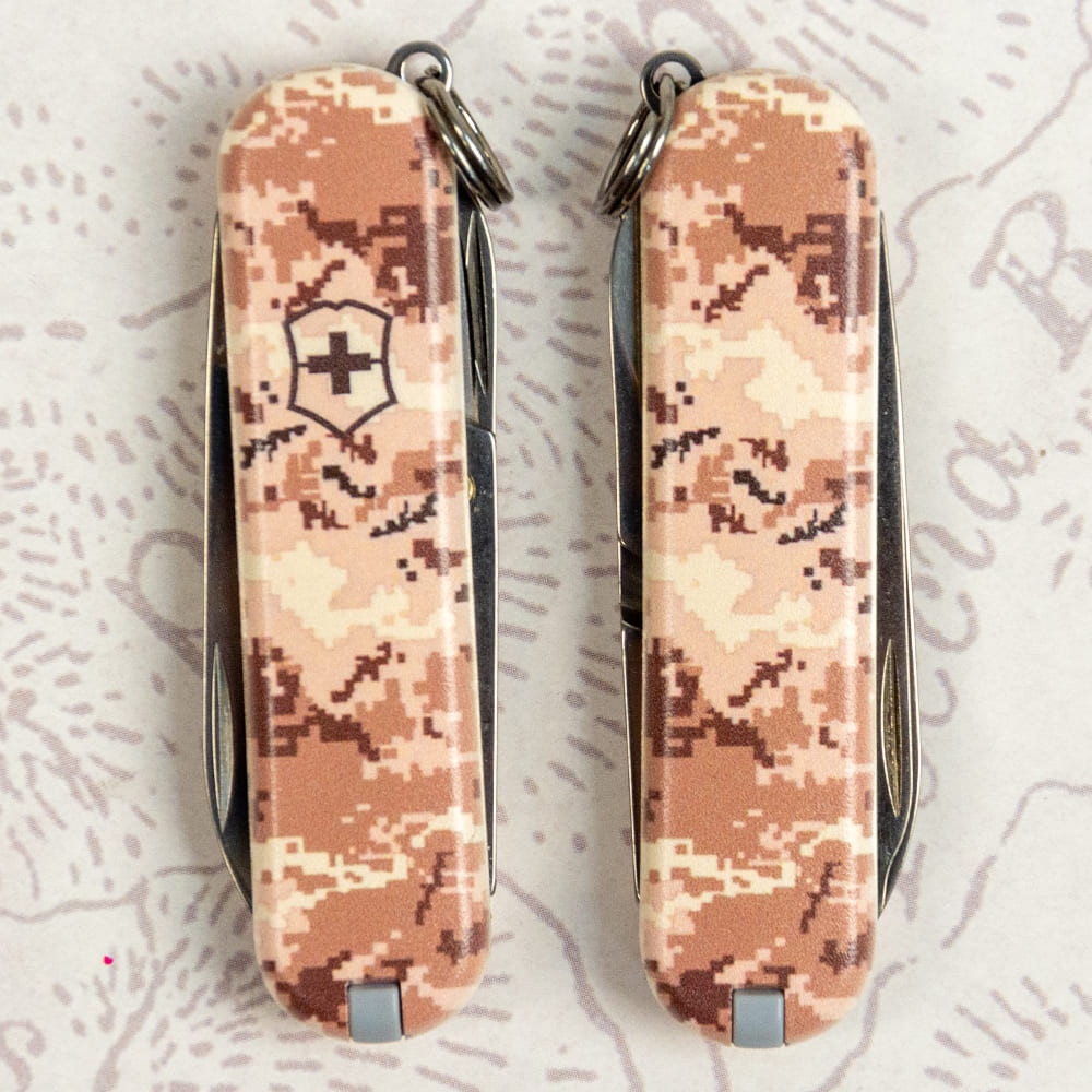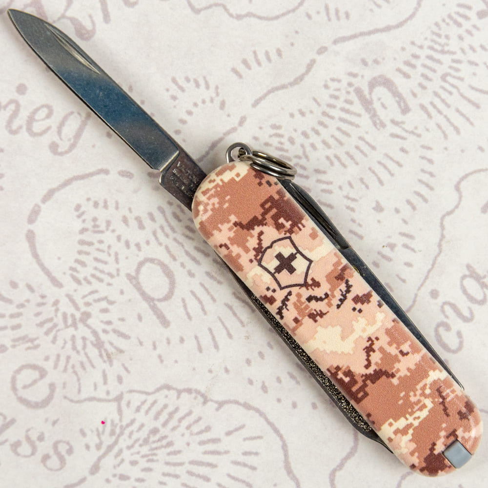 Victorinox CLASSIC SD ARMY Пиксель песочный с Лого - крошечный складной нож-брелок 58 мм на 7 функций с матовыми накладками в расцветке песочно-бежевого пикселя. Многофункциональный, невероятно компактный и украинский дизайн с пикселем - все в этом ноже делает его знаковым дополнением в вашу коллекцию карманных ножей Викторинокс. Удобно носить его всегда с собой на связке ключей, в сумке или кармане. Культовый дизайн и выверенная годами практичность с популярными и востребованными каждый день функциями. Отрезать, нарезать, подкрутить винт или привести в порядок ногти - это только маленькая часть того, что вы сможете делать с вашим новым помощником. Прекрасный вариант высококлассного презента военным и всем поклонникам швейцарских армейских ножей.