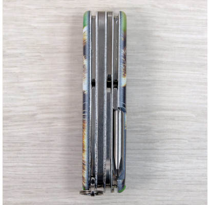 Коллекция ANIMAL, кроме дизайна накладок, отличается заменой пинцета и зубочистки на цветные для наиболее гармоничного сочетания с рисунком, а также расширением комплектации – нож сразу с булавкой. Изменения коснулись и упаковки – ножи ANIMAL помещены в коробку Victorinox с демонстрационной вставкой для эффектной презентации. А эстетичные накладки делают нож прекрасным образцом коллекционирования.