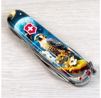 Эксклюзивный карманный нож CLIMBER UKRAINE [Сокол-защитник] с качественной цветной печатью на обеих накладках, покрытых глянцевым лаком. Профессиональное выполнение дизайна с украинскими смыслами. Специальное эстетичное предложение для украинских поклонников и коллекционеров бренда Victorinox.