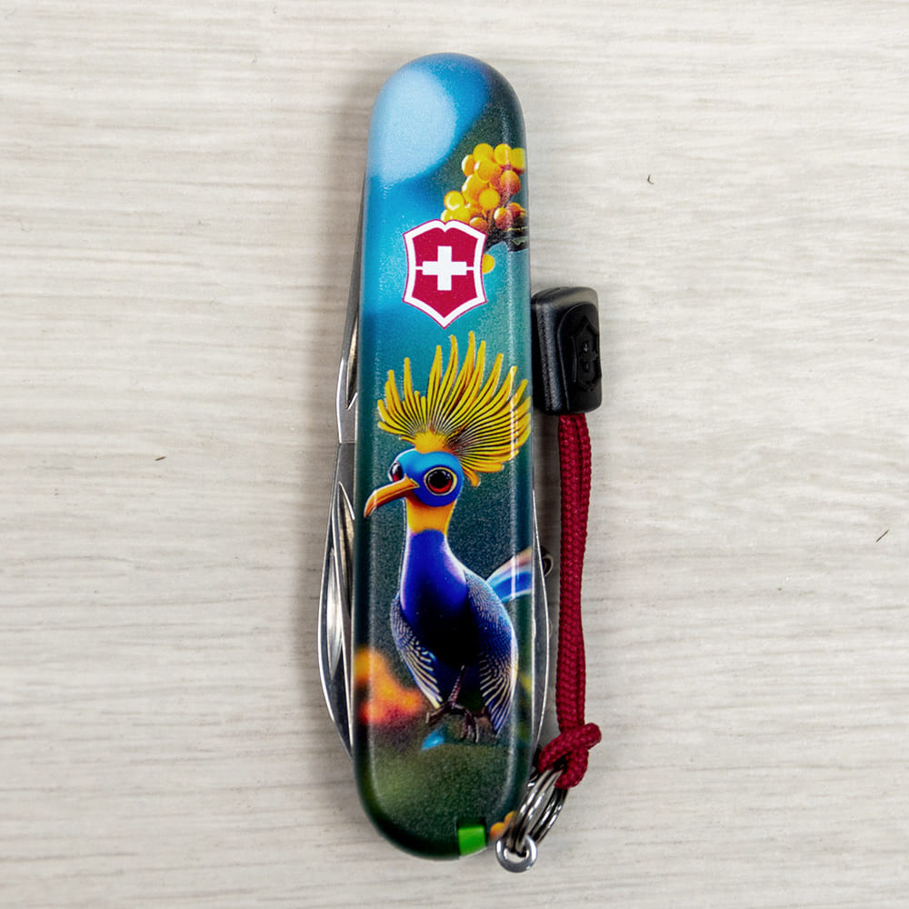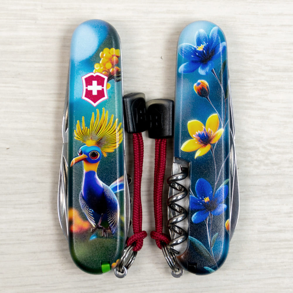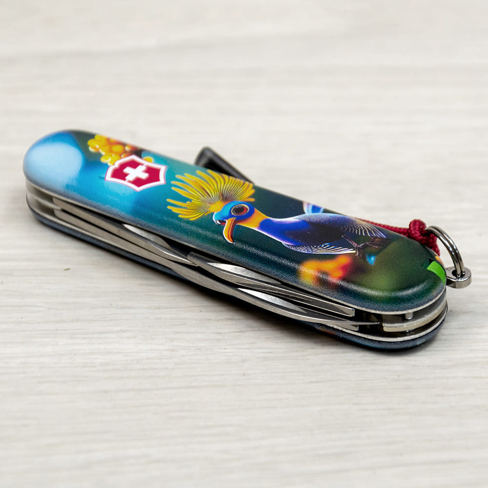 Оригинальный швейцарский складной нож SPARTAN DESIGN [Райская синяя птичка] с качественной цветной печатью на обеих накладках и комбинированным матово-глянцевым покрытием. Специальное эстетичное предложение для украинских поклонников и коллекционеров бренда Victorinox. Идеальный вариант интересного подарка в красивой упаковке с прозрачным окошком, что позволяет видеть дизайн сразу и подчеркивает эксклюзивность подарка.