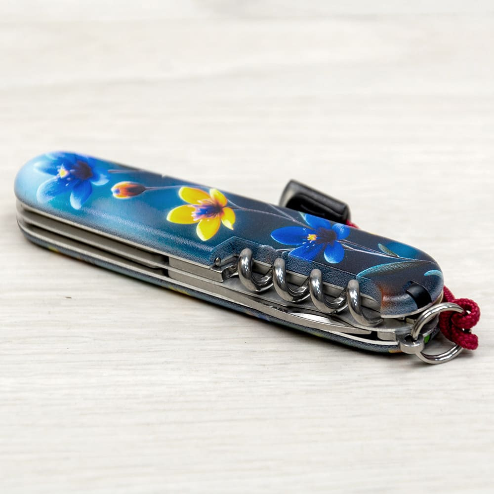Средний карманный нож Victorinox SPARTAN UKRAINE 91мм / 12 функций / синие накладки / штопор / Цветы