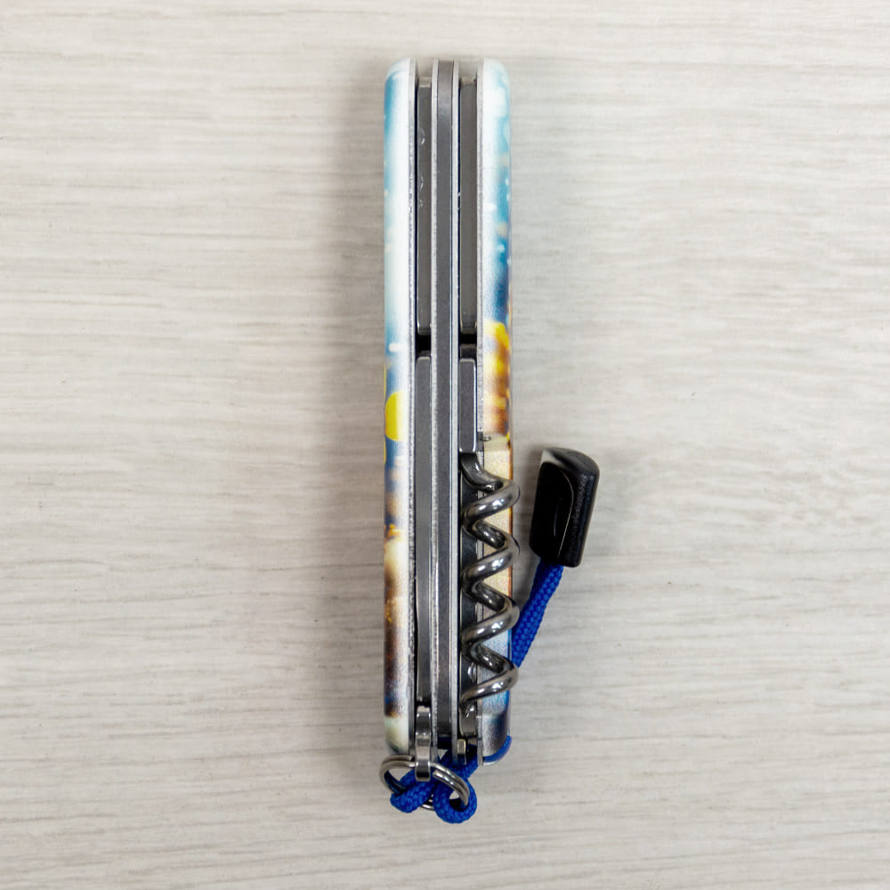 Эксклюзивный складной нож Victorinox CAMPER DESIGN 91мм/14 функций /штопор/пила /Желто-голубой ирис 1.3613.3.R2060pk (Швейцария) Гарантия: пожизненная