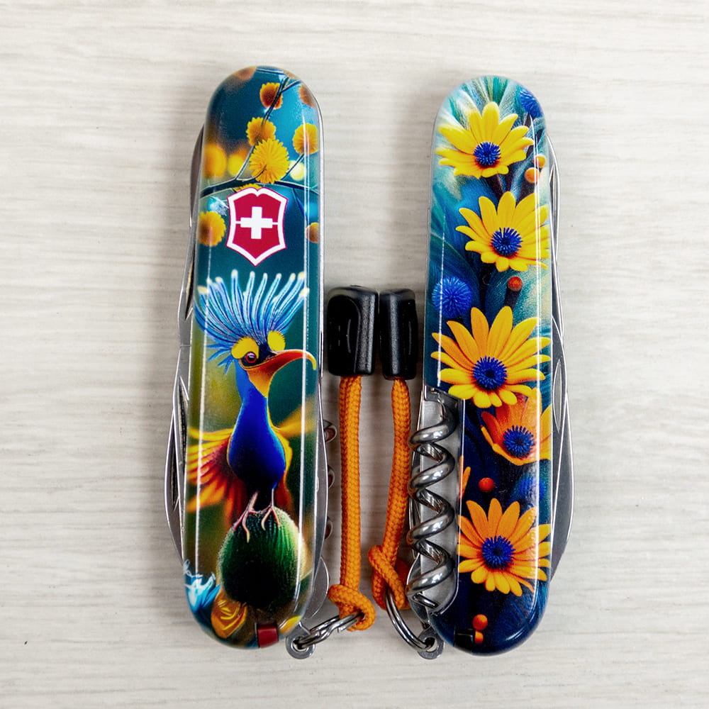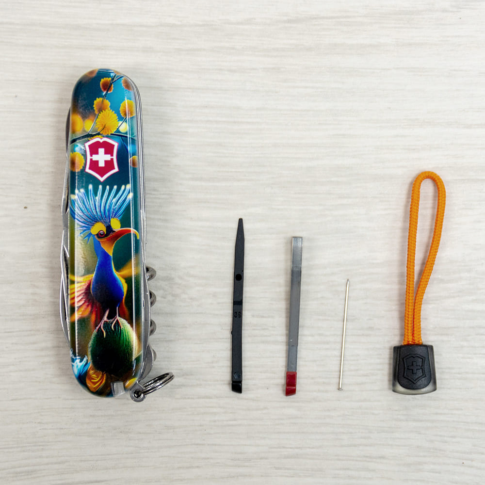 Оригинальный швейцарский складной нож CLIMBER DESIGN [Яркая птичка] с цветной печатью на обеих накладках и глянцевым покрытием. Специальное эстетичное предложение для украинских поклонников и коллекционеров бренда Victorinox. Идеальный вариант интересного подарка в красивой упаковке с прозрачным окошком, что позволяет видеть дизайн сразу и подчеркивает эксклюзивность подарка.