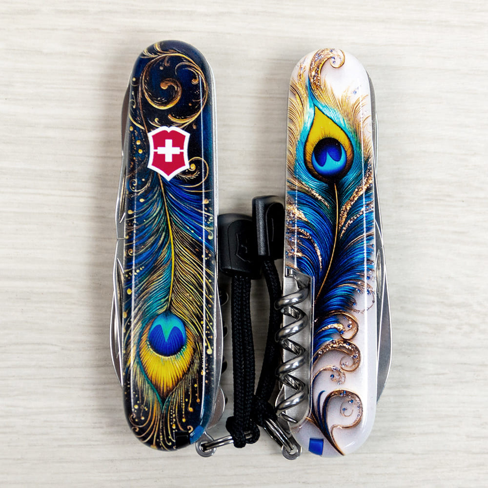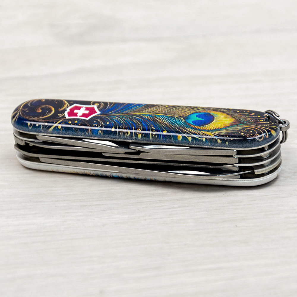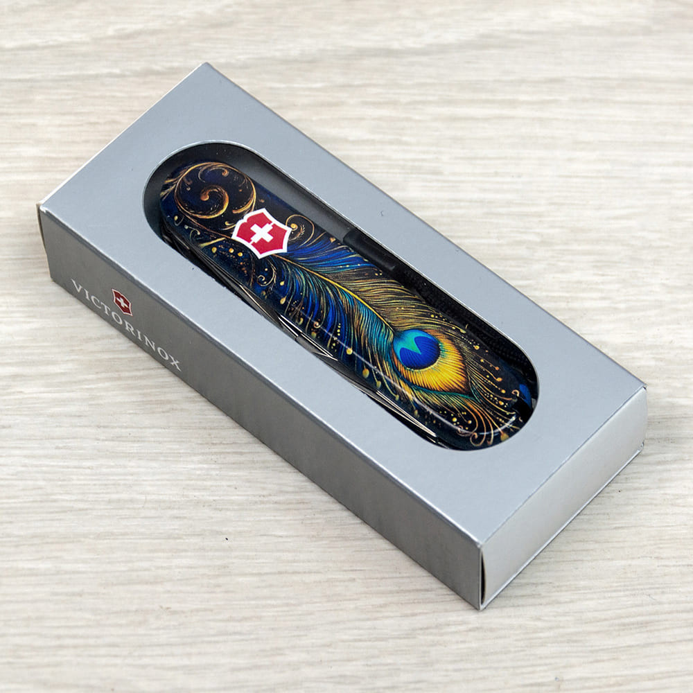 Оригинальный швейцарский складной нож HUNTSMAN DESIGN [Удивительное перо] с цветной печатью на обеих накладках и глянцевым покрытием. Специальное эстетичное предложение для украинских поклонников и коллекционеров бренда Victorinox. Идеальный вариант интересного подарка в красивой упаковке с прозрачным окошком, что позволяет видеть дизайн сразу и подчеркивает эксклюзивность подарка.