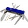 Четырехслойный дизайн удобно разместил 2 стальных клинка разного размера, ножницы с возвратно-пружинным принципом работы, пилу и два комбинированных инструмента с одной стороны, а также шило, штопор и многоцелевой крюк с другой. Совмещенные приспособления сочетают открывалки для бутылок и консервов, плоские отвертки (3 и 6 мм), а также паз для удаления старой изоляции. Из торцов накладок извлекаются зубочистка и пинцет.