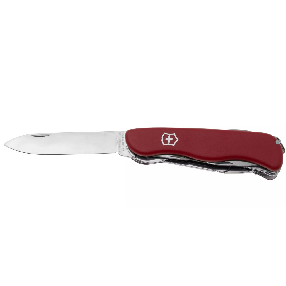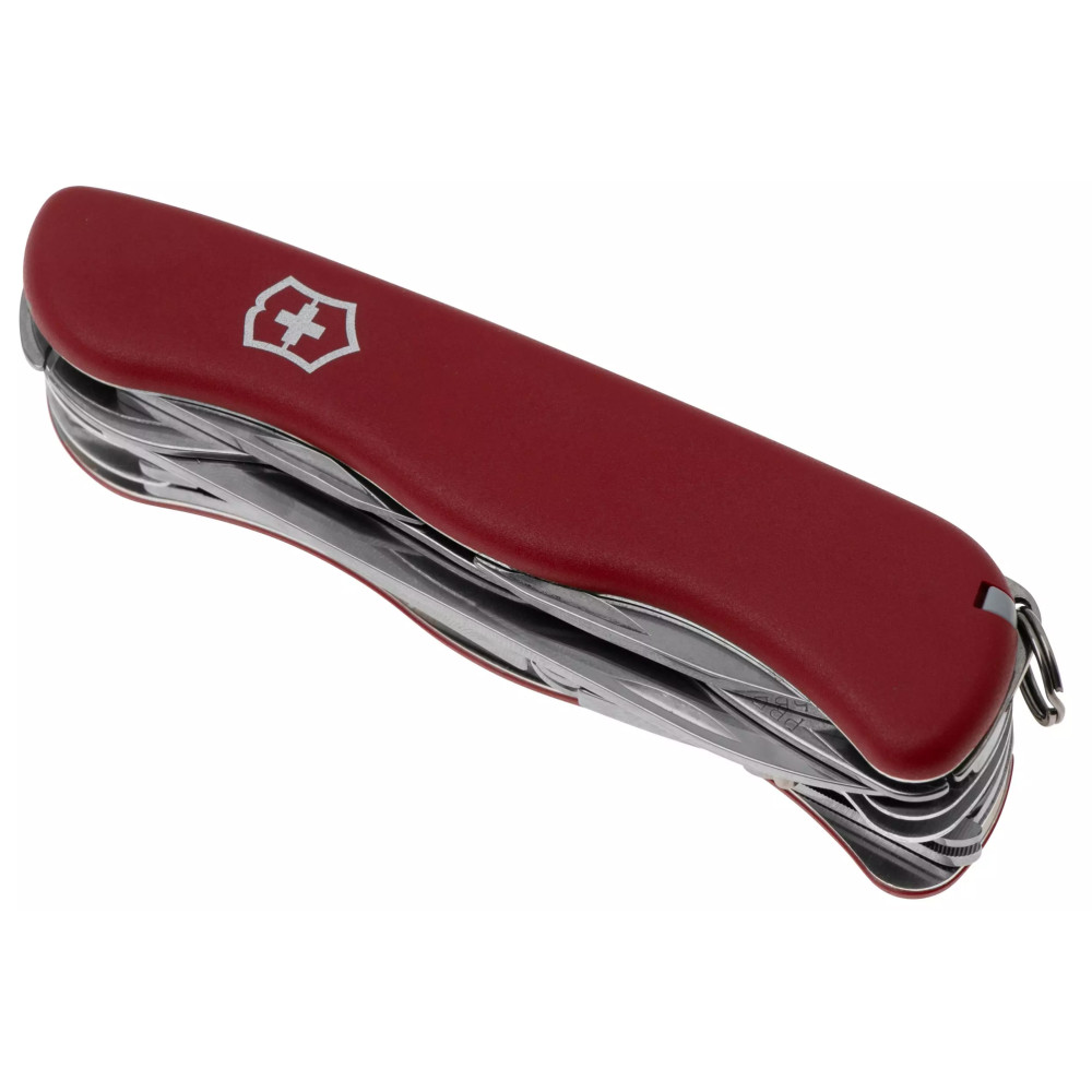 - Функции: Кольцо для ключей, Пинцет, Зубочистка, Ножницы, Фиксатор открытого лезвия, Штопор, Открывалка для бутылок + 6мм пл.отвертка + паз для снятия изоляции, Консервный нож + 3мм пл.отвертка, Мини-отвертка в штопоре, Пила по дереву, Напильник и ножовка по металлу, Плоскогубцы, Большое лезвие, Шило - кернер, Крестовая длинная отвертка 0/1, Крестовая отвертка 1/2