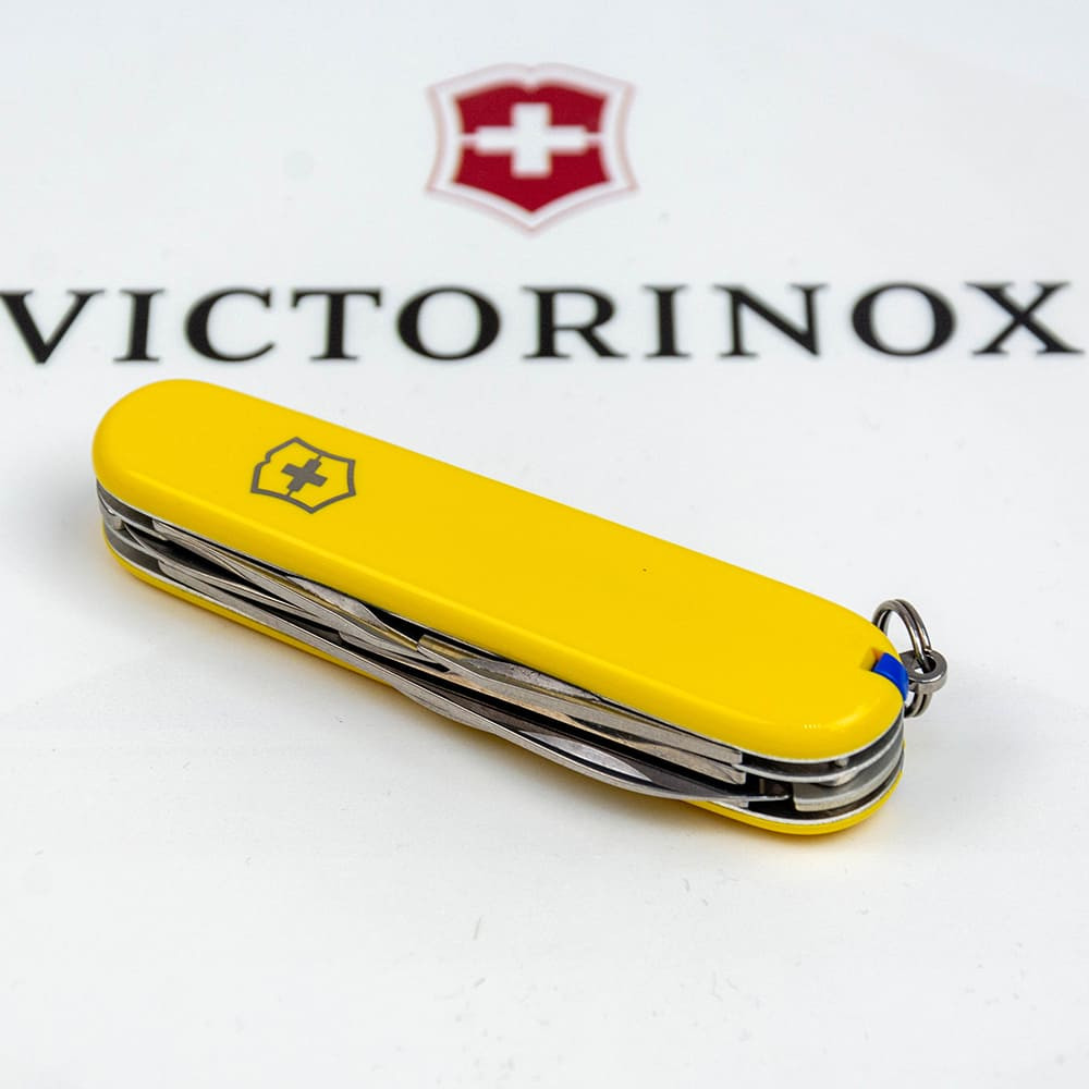 Швейцарский карманный нож Victorinox CLIMBER UKRAINE 91мм / 14 функций / желто-синие накладки / штопор / ножницы / крюк 1.3703.8.2 (Швейцария) Гарантия: пожизненная