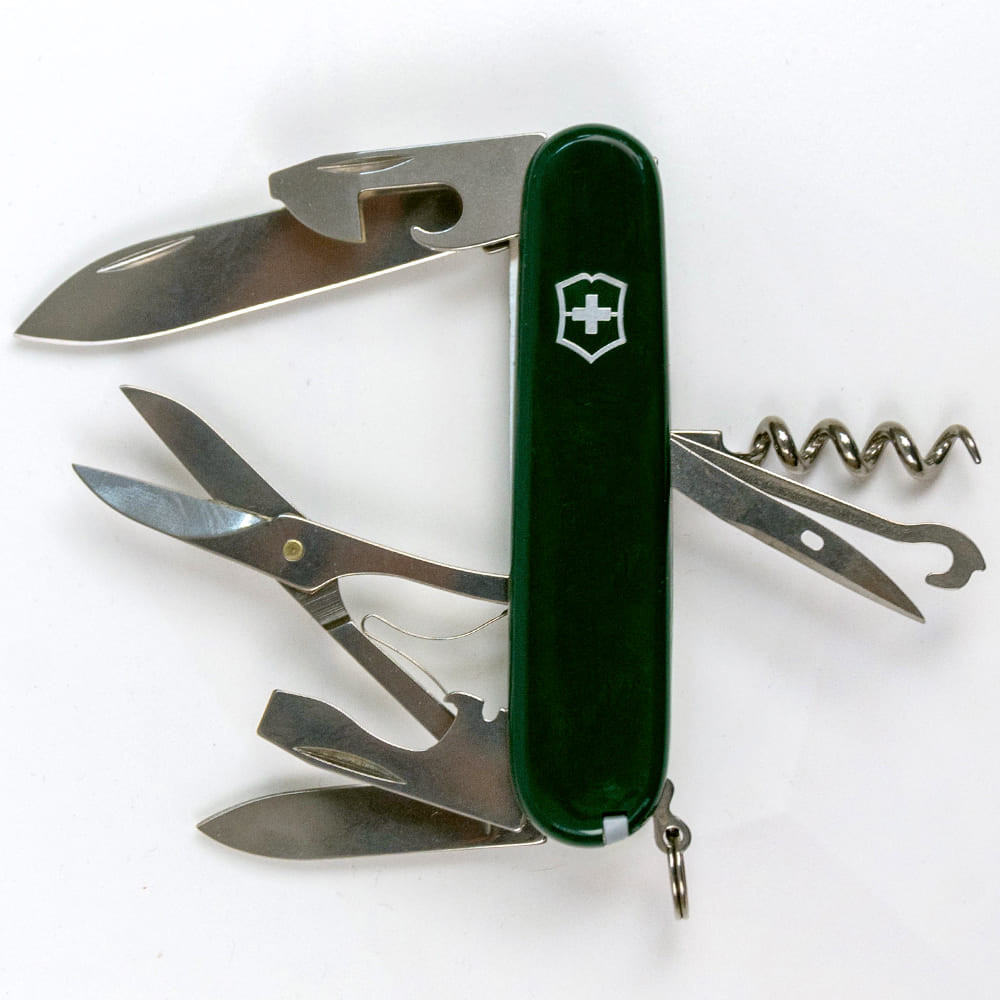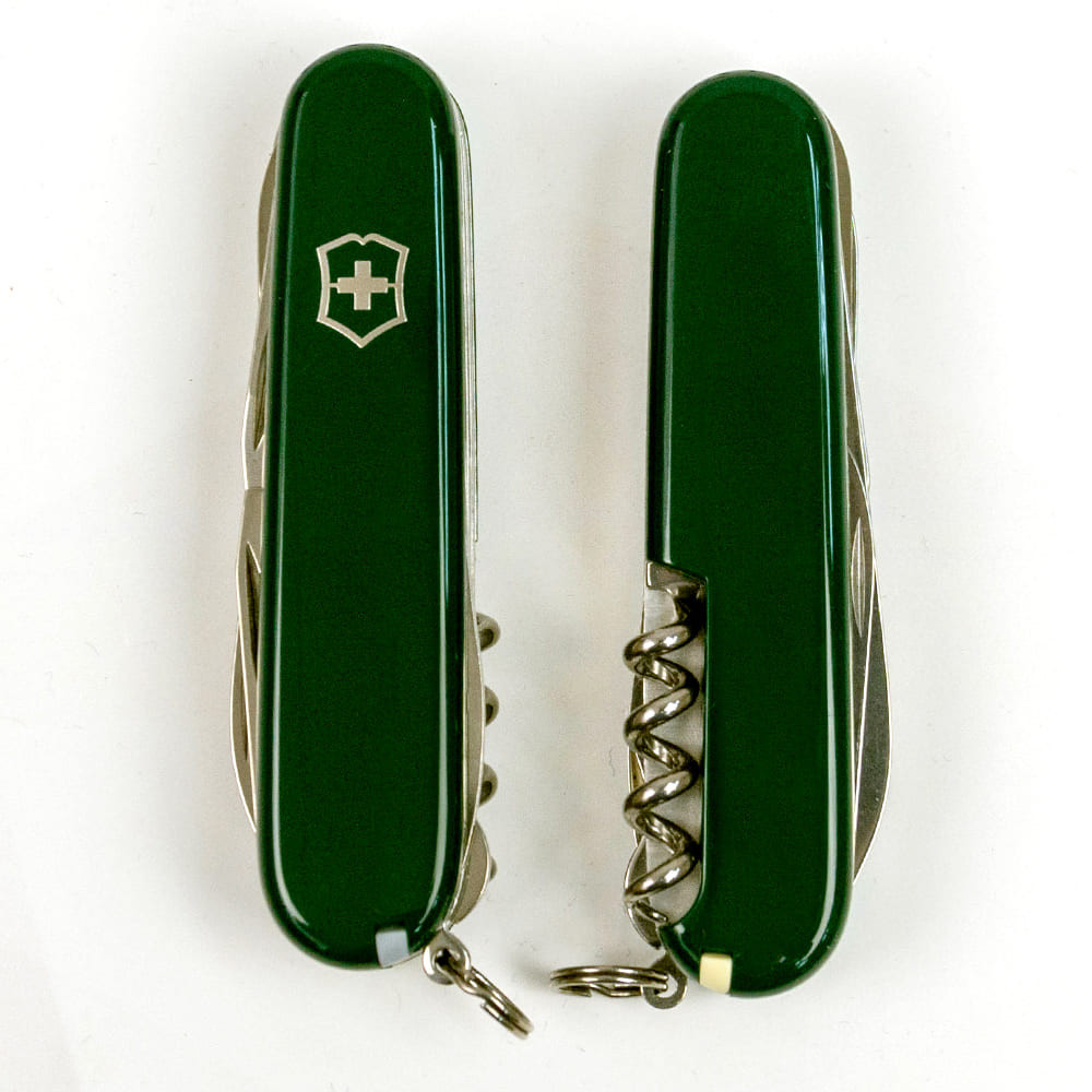 Victorinox HUNTSMAN (зеленый) – многофункциональный карманный нож среднего размера 91 мм на 15 функций. Huntsman - швейцарский армейский нож с солидным функционалом для выполнения большого спектра работ. Содержит два очень острых лезвия разной длины, удобные ножницы как для быстрого маникюра, так и обрезки ниток, качественную пилу по дереву. Открывалки (для бутылок и консервов) дополнены плоскими отвертками на конце. Многозадачный крючок, штопор и шило с ушком для шитья. В торцах накладок скрывается пинцет и пластиковая зубочистка. Стальное кольцо, чтобы прикрепить нож к цепочке или темляку. Все инструменты гарантируют безупречную работу и не люфлят.