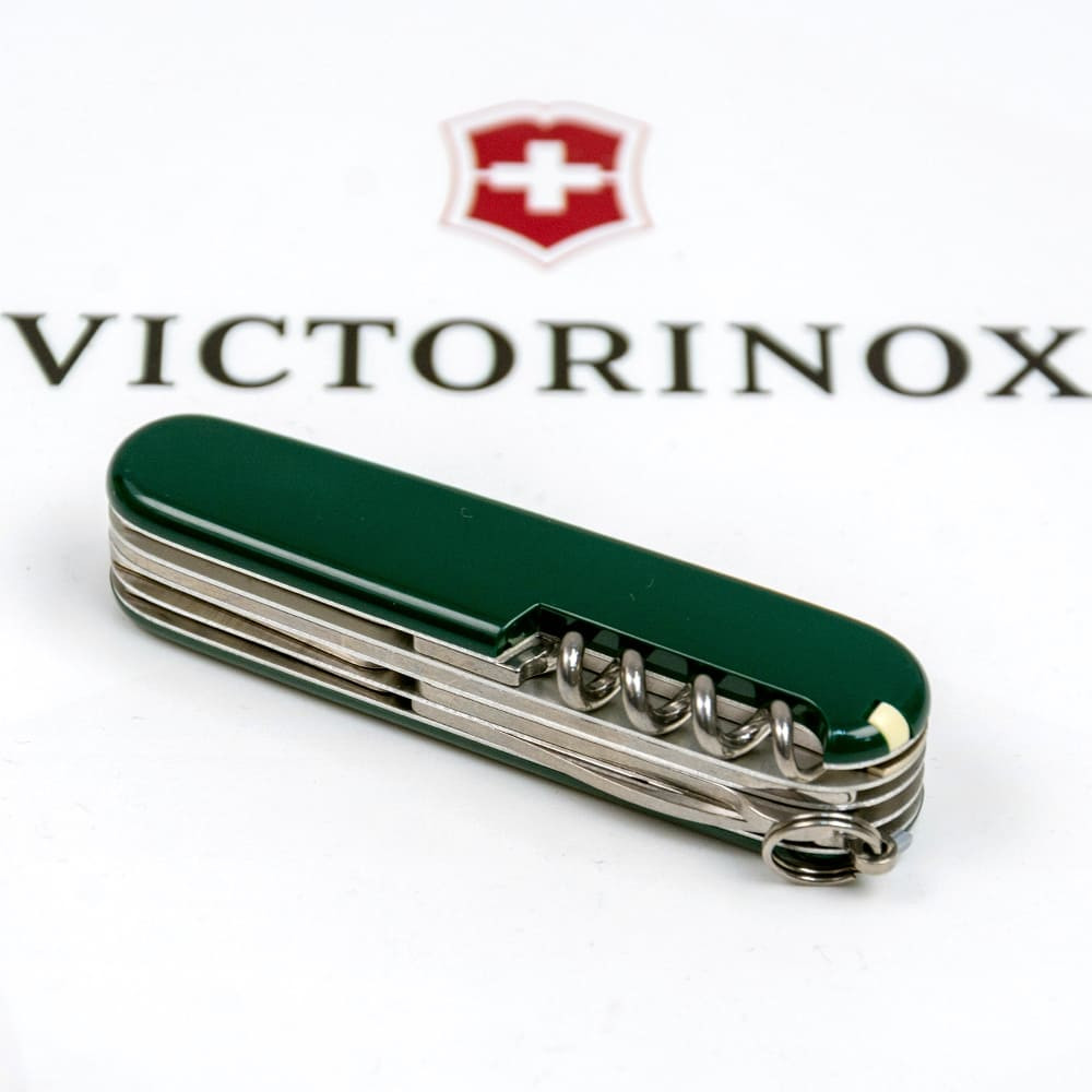 Швейцарский карманный нож Victorinox HUNTSMAN 91мм / 15 функций / зеленые накладки / штопор / ножницы / пила / крюк 1.3713.4 (Швейцария) Гарантия: пожизненная