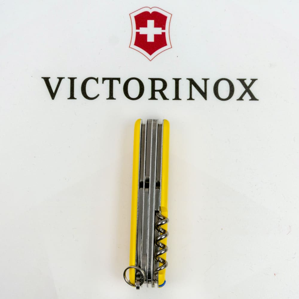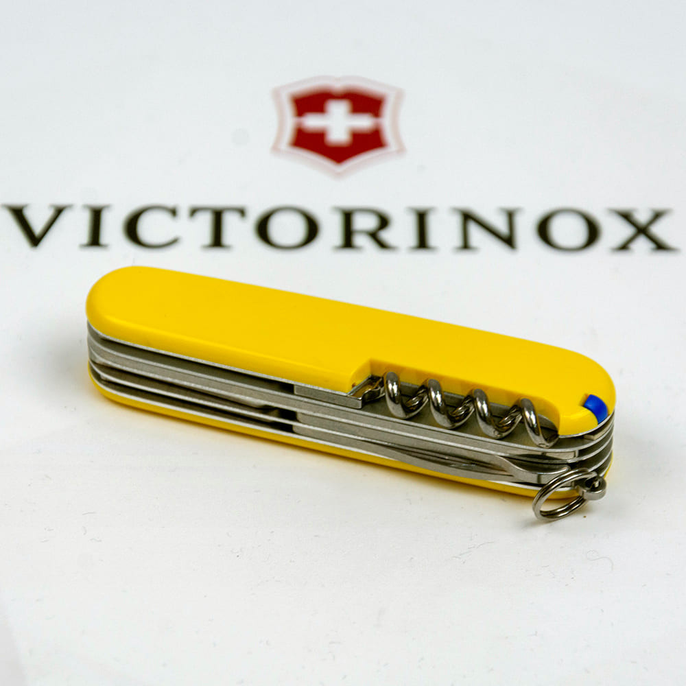 Швейцарский карманный нож Victorinox HUNTSMAN UKRAINE 91мм / 15 функций / желто-синие накладки / штопор / ножницы / пила / крюк 1.3713.8.2 (Швейцария) Гарантия: пожизненная