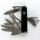 Функции: Кольцо для ключей, Пинцет, Зубочистка, Ножницы, Штопор, Малое лезвие, Крючок многоцелевой, Пила по дереву, Плоскогубцы, Стамеска - долото, Большое лезвие, Шило - кернер, Пилочка для ногтей, Открывалка для бутылок, Малая плоская отвертка, Консервный нож, Большая плоская отвертка, Паз для снятия изоляции, Очиститель для ногтей, Напильник, Ножовка по металлу, Кусачки для провода, Обжимной инструмент