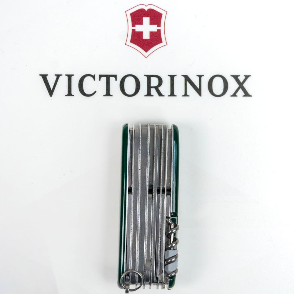 Швейцарский карманный нож Victorinox SWISSCHAMP 91мм / 33 функции / зеленые накладки / штопор / ножницы / плоскогубцы / пила / напильник / лупа / стамеска / рыбочистка 1.6795.4 (Швейцария) Гарантия: пожизненная