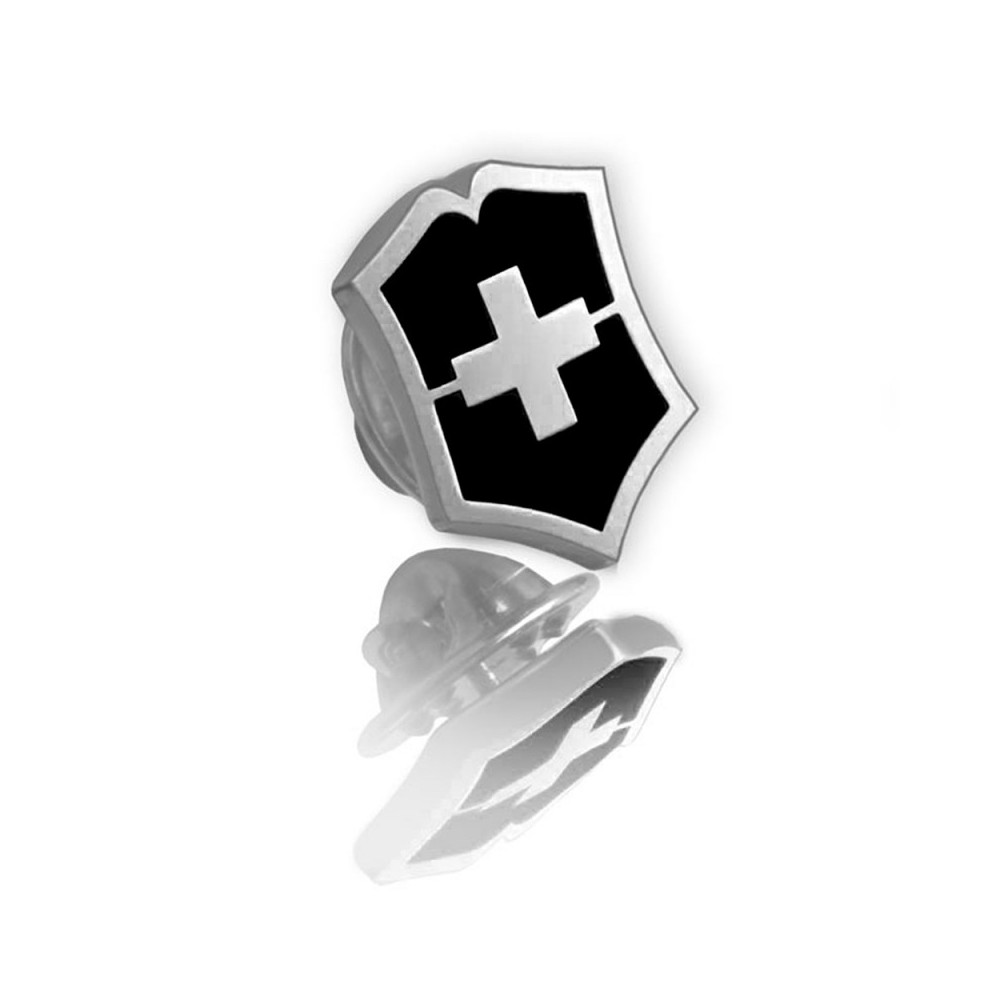 Подарунковий значок Victorinox 4.1888.3, чорний, з логотипом Swiss emblem, застібка з фіксацією на лацкані піджака. Розміри: 13 мм Х 10 мм Х 9 мм (ДхШхВ, мм).