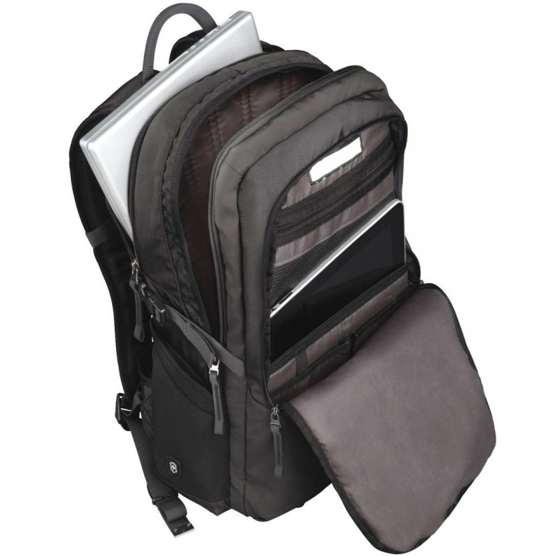 Рюкзаком Victorinox ALTMONT 3.0/Black 32388001 є дуже зручний, місткий (30 л) і стильний аксесуар, який може використовуватися для щоденного відвідування офісу, навчального закладу або спортзалу. Також ця модель рюкзака Вікторінокс зможе стати вірним супутником мандрівника в туристичному поході або далекій подорожі.Вертикальна форма і широкі м'які лямки забезпечують зручність перенесення рюкзака навіть у тих випадках, коли він вщент заповнений речами. Зсередини конструкція цієї моделі представлена двома місткими відділеннями, куди можна скласти ноутбук, планшет, документи й дрібні особисті аксесуари. Якщо такий рюкзак використовується як дорожній атрибут, відділення для цифрової техніки можна заповнити одягом або іншими речами першої необхідності. Victorinox ALTMONT 3.0/Black виготовлений з міцного поліестеру, який вирізняється надзвичайною стійкістю до розриву і деформацій. Ця тканина еластична, тому, за необхідності, об'єм рюкзака може трохи збільшитися, приміром, коли в нього треба скласти багато речей.Рюкзак Вікторінокс має невелику вагу. Ця модель зручна та компактна, крім того, не вимагає особливого догляду. Професійне моделювання конструкції, застосування високоякісної сировини для пошиття й міцної фурнітури — забезпечують надзвичайну зносостійкість і довговічність виробу.Окремої уваги заслуговує оздоблення Victorinox ALTMONT 3.0/Black. На відміну від стриманих, однотонних аналогів, цей рюкзак вирізняється стильним картатим принтом всією поверхнею. Рюкзак має трапецієподібну форму з плавними лініями переходу корпусу. Такі особливості виробу роблять його однаково актуальним аксесуаром як для жінок, так і для чоловіків. Наш магазин пропонує вигідно купити Victorinox ALTMONT 3.0/Black 32388001 просто зараз! Наших клієнтів, поза сумнівом, потішать висока якість оригінальної швейцарської продукції, а також лояльна цінова політики нашої компанії! Оформити замовлення можна on-line або за телефонами, вказаних на сайті.