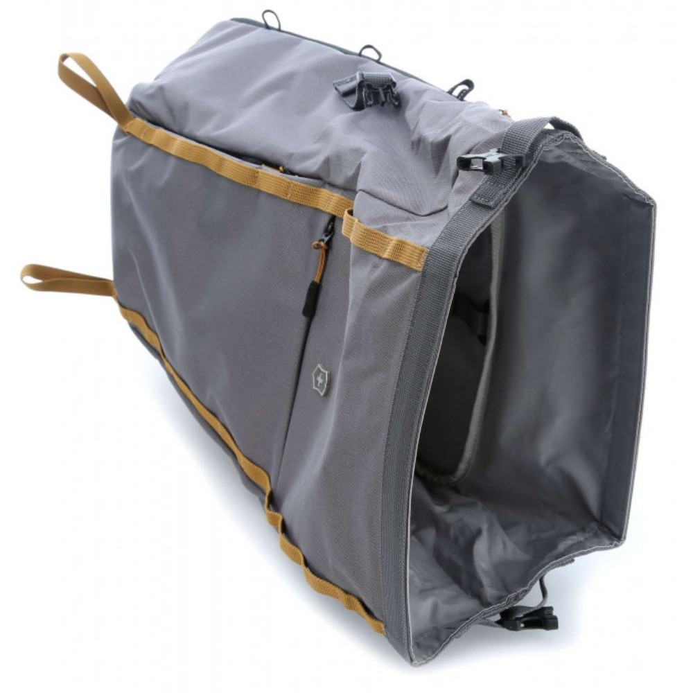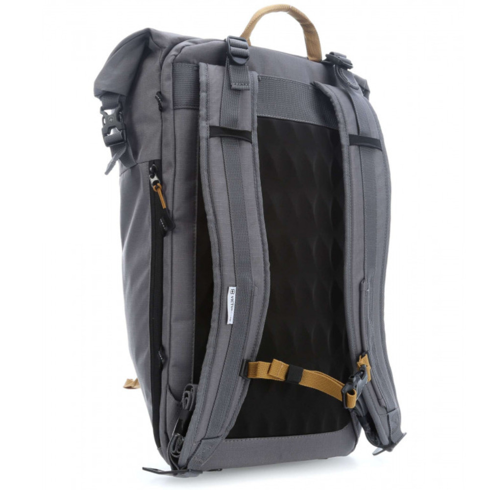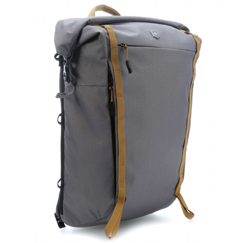 Сірий рюкзак Victorinox Travel ALTMONT Active Rolltop Laptop з безпечним відділенням для ноутбука 15 дюймів, зовнішньою системою кріплення, свистком і відкривачкою. Круте колірне рішення у стилі унісекс. Рифлена м'яка спинка, ергономічні наплічні лямки та грудні ремінці з фіксатором для рівномірного розподілу ваги.