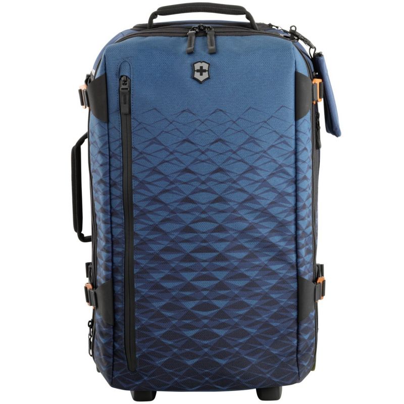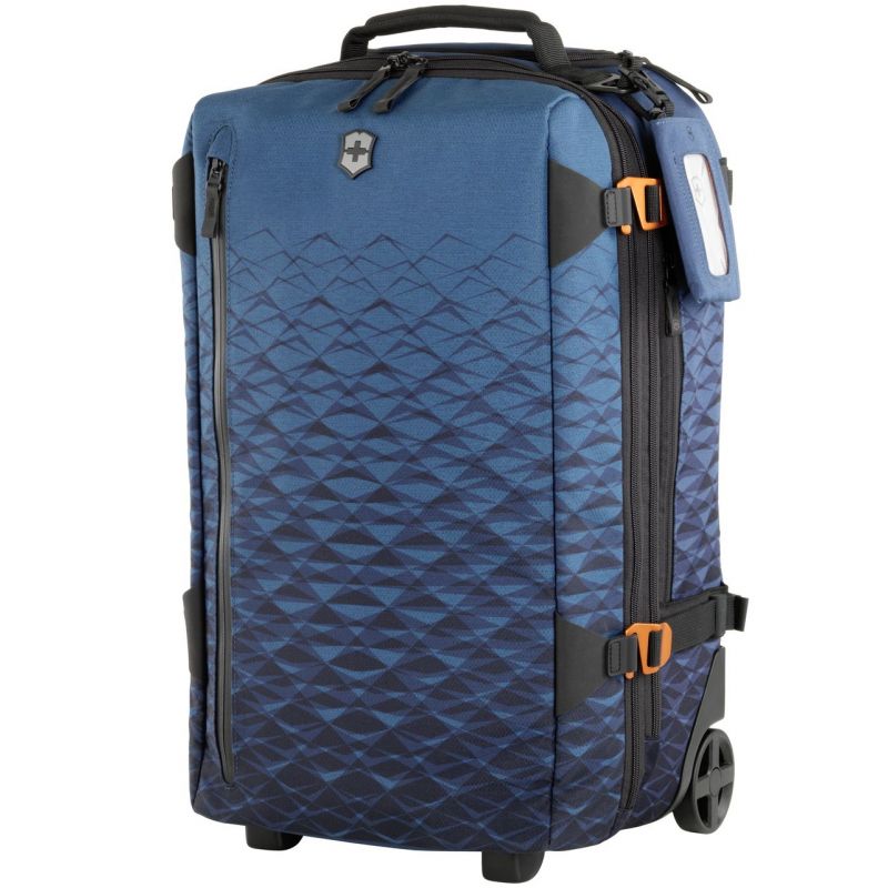 Легка текстильна валіза на 2-х колесах VX TOURING від Victorinox Travel – надійний компаньйон для подорожей. При вазі всього 2,35 кг вона, як мурашка, допоможе перевезти велику кількість речей. Містка модель об'ємом 33 літри із серії Vx Touring чудово підійде для поїздки з усім необхідним багажем. Виконано в модній колірній гамі темно-бірюзового відтінку та доповнено дизайнерським принтом, стилізованим під гірські вершини.