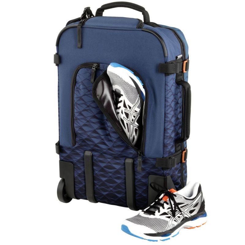 Внутрішній простір організовано місткою глибокою секцією для одягу з Х-подібними еластичними ременями для плоского укладання та фіксації багажу, а також доповнено великою сітчастою кишенею на кришці валізи та невеликою кишенею на блискавці для дрібних предметів. Екстер'єр раціоналізовано великим плоским відділенням для ноутбука в лицьовій частині та відсіком для взуття на спинці валізи.