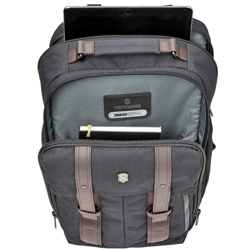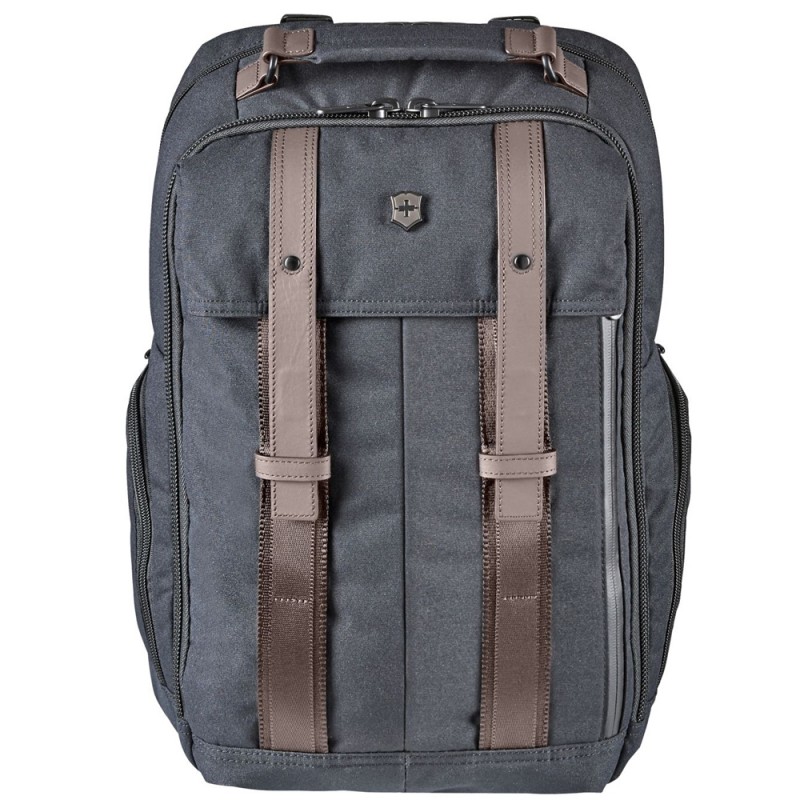 Рюкзак для ноутбука Victorinox Travel Architecture Urban 602843 - дуже стильний, багатофункціональний аксесуар, призначений для повсякденного використання. Особливість представленої моделі - оригінальний дизайн, в якому втілилися останні модні тенденції. Для оформлення рюкзака застосовувалося гармонійне поєднання благородного сірого і класичного коричневого відтінку.Для виготовлення рюкзака Victorinox Travel Architecture Urban був використаний щільний поліестер, який пройшов спеціальну обробку мембранним просоченням, яке дозволяє уникнути розриву матеріалу, а також промокання, вигоряння на сонці та механічного деформування. Обробна фурнітура ременів, які фіксують корпус рюкзака, зроблена з натуральної, зносостійкої шкіри.Зручність використання представленого багажного аксесуара обумовлена ергономічними плечовими лямками, довжина яких легко регулюється за допомогою спеціальних ременів. Уникнути тиску поклажі на плечі та спину, дозволяє щільний шар м'якого наповнювача, який міститься всередині таких лямок.Велике функціональне значення має задня панель рюкзака, її анатомічний характер. Прошита спеціальним наповнювачем спинка каркаса дає можливість знизити тиск багажу на хребет під час перенесення важкого, доверху заповненого рюкзака. Корисний внутрішній простір багажного аксесуара Вікторінокс представлений двома великими відділеннями, а також компактною зовнішньою і маленькими бічними кишенями на замках. У великих відділеннях можна спакувати планшет і ноутбук, а також письмове приладдя, ділові папери та багато інших особистих речей, які можуть стати в пригоді протягом завантаженого робочого дня.Загальна місткість рюкзака становить 26 літрів. Зміцнене дно і ретельно прошитий корпус роблять рюкзак надійним і витривалим. Такий виріб прослужить довгі роки, зберігаючи свою зовнішню новизну і привабливість протягом всього терміну експлуатації.Нетривіальний сучасний дизайн Victorinox Travel Architecture Urban дозволяє успішно поєднувати його як зі спортивними, так і з класичними предметами гардероба в різних колірних рішеннях. Ця модель рекомендується представникам обох статей, вона ефектно і ненав'язливо підкреслить хороший смак і раціональність свого власника.