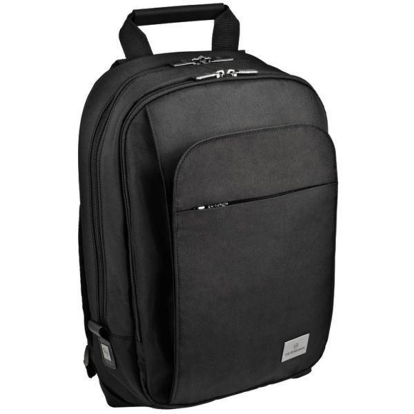 Рюкзак для ноутбука Victorinox Travel Werks Professional 30333201 - дуже стильна модель багажного аксесуара від знаменитого швейцарського бренда Вікторінокс. Він оптимально підходить для активних ділових людей та прогресивної молоді.Внутрішній простір рюкзака Вікторінокс Тревел Веркс Профешнл організований трьома функціональними відділеннями, кожне з яких призначене для певних цілей. Перше відділення розташоване на зворотному боці лицьової панелі рюкзака. Воно чудово підходить для зберігання документів, портмоне, посвідчень особи, банківських карт, письмового приладдя і, звичайно ж, улюбленого швейцарського мультитула, з якого почалася історія успішного бренда Victorinox.Друге відділення - середнє, створене спеціально для ноутбука. Тут можна побачити зручну секцію для цифрового пристрою, а також компресійні ремені, які надійно закріплять його в одному положенні на весь час подорожі. Оскільки ця кишеня в центрі корпусу між двома іншими відділеннями, ноутбук захищений від негативного впливу ззовні. Третє відділення розташоване в задній частині корпусу. Воно вбудоване у спинку рюкзака. Тут можна зберігати планшет, електронну книгу або будь-який інший девайс аналогічного формату. Також сюди можна скласти речі, які власник рюкзака хоче вберегти від чужих очей.Крім функції кишені, задня панель Victorinox Travel Werks Professional грає роль ортопедичного елементу конструкції. Для досягнення ортопедичного ефекту спинка особливим чином прошита товстим шаром наповнювача. Ця особливість корпусу дозволяє істотно знизити тиск рюкзака на хребет, а ще дає можливість підкоригувати поставу. Експлуатація рюкзака Вікторінокс Тревел Веркс Профешнл забезпечується двома традиційними способами. Перший з них - ручна переноска за допомогою петлі з твердою основною частиною. Другий - класичне перенесення на спині за допомогою двох ергономічних наплічних лямок з м'яким наповнювачем всередині.Victorinox Travel Werks Professional виготовлений зі щільного нейлону, який відштовхує вологу, а також стійкий до розриву, деформації та вигоряння на сонці. Рюкзак оформлений у класичному чорному кольорі, на тлі якого ефектно виділяється сталевий шильд, вигравіюваний гордою символікою легендарної швейцарської компанії Вікторінокс.