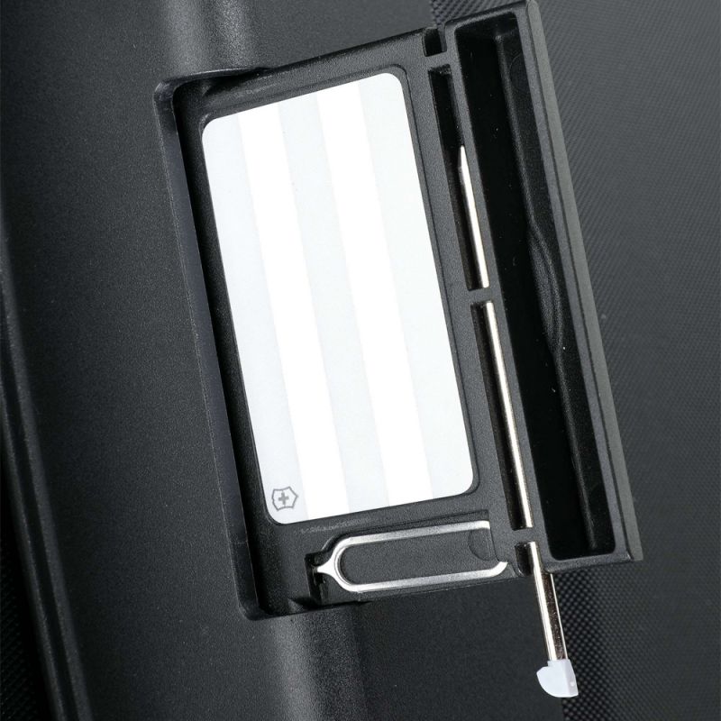 Victorinox Travel CONNEX HS/Black 605667 має мультифункціональну панель, інтегровану у верхню частину спинки: ID-панель з висувною ручкою та інструмент для заміни SIM-картки.