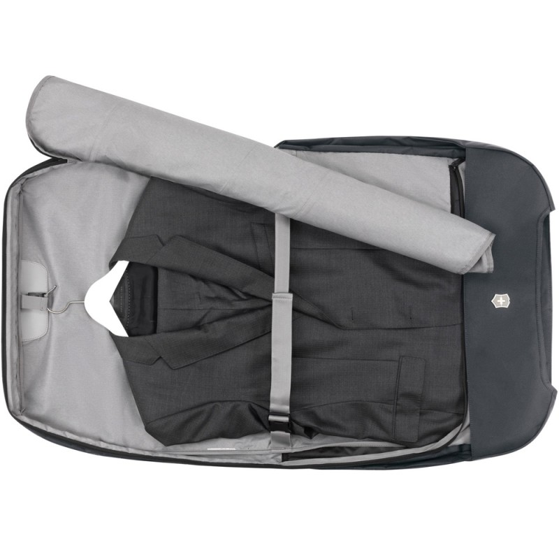 Дорожній чохол для одягу Victorinox Travel WERKS TRAVELER 6.0. Зберігайте костюм, аксесуари та проїзні документи в одній сумці. Розкішний портплед Werks Traveler 6.0 ідеально підходить для того, щоб речі не м'ялися під час подорожей, тому він просто необхідний, якщо збираєтеся у відрядження або на весілля до друга. У відділення для костюма легко поміщається один зимовий костюм або два легкі літні костюми, а компресійний ремінь утримує їх на місці. Є ще дві внутрішні кишені: сітчаста для туалетного приладдя, а інша підходить для однієї-двох сорочок і спідньої білизни. Коли ви дістанетеся до місця призначення, у вас є гачок, за який можна повісити портплед у шафу.