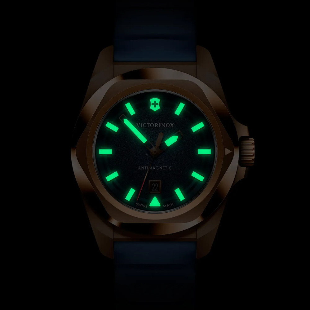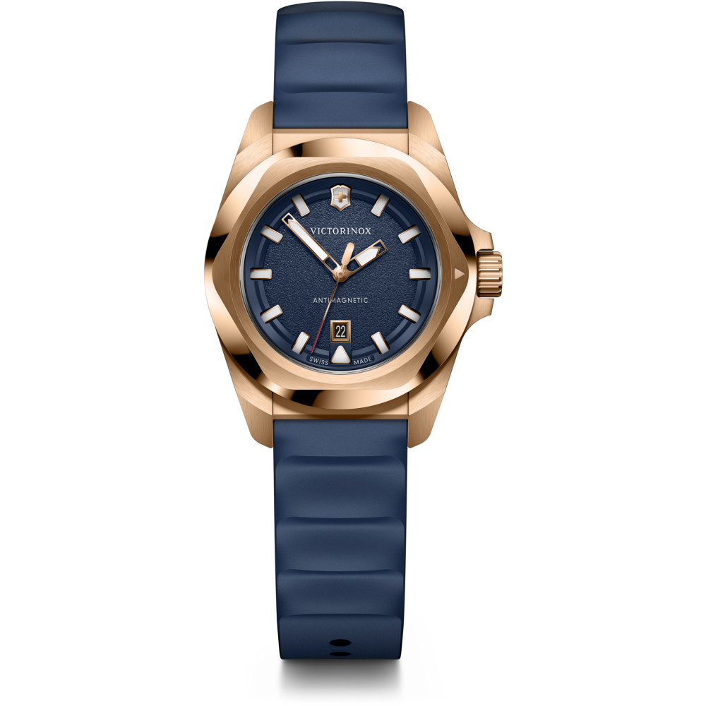 I.N.O.X. (Айнокс) - серія удароміцних і водонепроникних годинників з відмінним зухвалим дизайном безеля. Порівняно з попередніми жіночими моделями цієї серії, I.N.O.X. Small містять усі функції своїх більших аналогів: відображення дати, антимагнітний захист, удароміцність та водонепроникність. Крім того, сертифікований за ISO антимагнітний захист зберігає точність ходу годинника після щоденного впливу електромагнітного випромінювання, наприклад, від телефона або електромашини. Сьогодні годинники Victorinox проектують, виготовляють та тестують на їхньому власному заводі у Делемоні, Швейцарія.