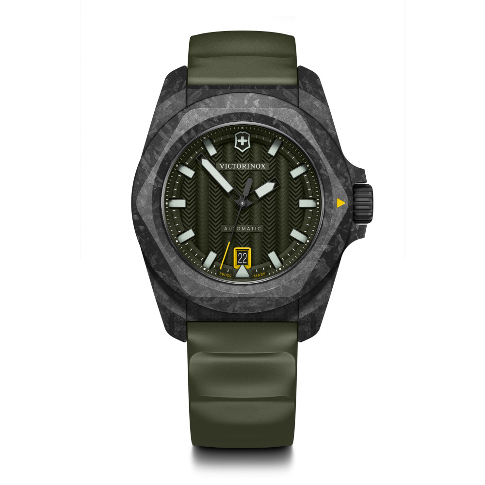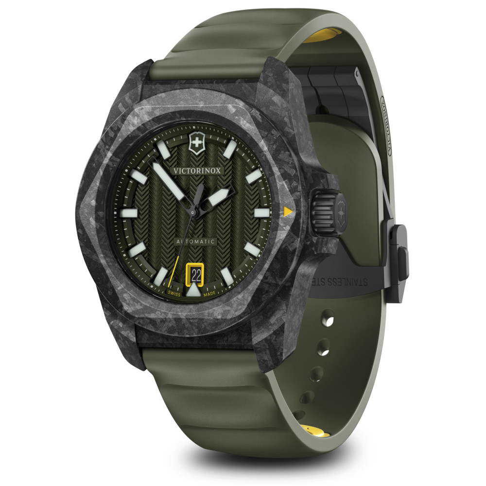 Карбоновий автоматичний годинник I.N.O.X. Automatic 41 мм на зеленому спортивному ремінці у наборі з ексклюзивним швейцарським ножем Spartan. Завдяки характеристикам, які охоплюють водонепроникність 200 м та сертифіковану за ISO 1413 ударостійкість, а також легкому корпусу з вуглецевого композиту, ви завжди будете тримати все під контролем.