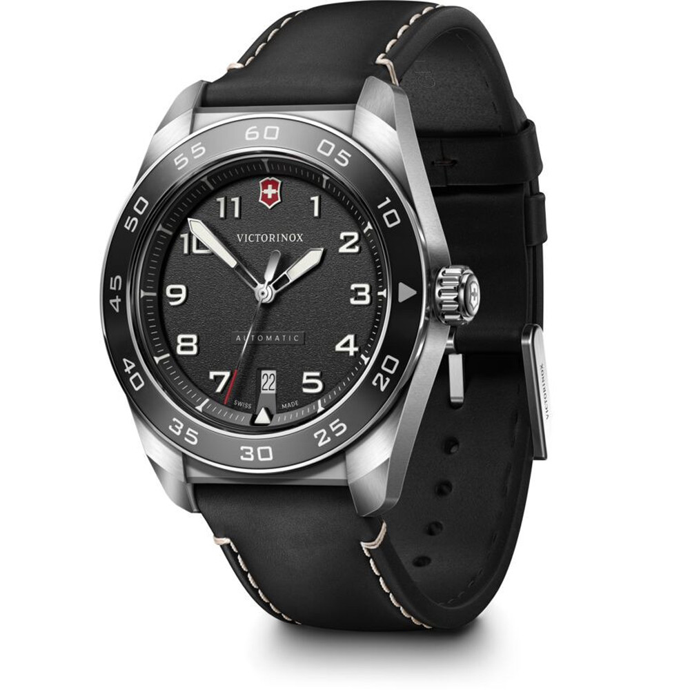 Victorinox Swiss Army SWISS ARMY Automatic 42мм/чоловічий годинник/автоматичний/чорний циферблат/чорний шкіряний ремінець /100м/Сапфірове антиблікове скло/Сталевий корпус Швейцарія 242044 Гарантія: 5 років