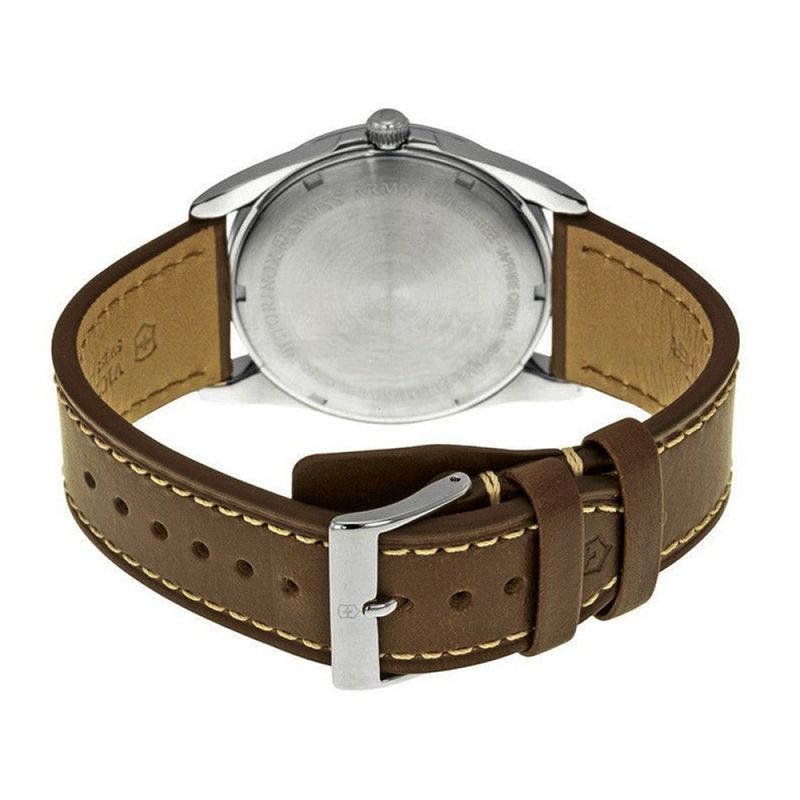 Для виготовлення корпусу INFANTRY вибрали неіржавний сталевий сплав 316L від Victorinox. Ця елітна марка сталі має унікальну здатність поглинати ударні навантаження. Гіпоалергенний сплав, серед іншого, характеризується антимагнітними властивостями. Корпус випромінює впевнений класичний стиль, втілюючи спадщину швейцарського армійського ножа SAK. Модель у вінтажному стилі з лаконічним ремінцем зі шкіри екологічно чистого дублення, виконаного у темно-коричневому благородному відтінку. Контрастна строчка посилює візуальну привабливість. Ергономічний ремінець з класичною сталевою пряжкою та спеціальним язичком для комфортного носіння.