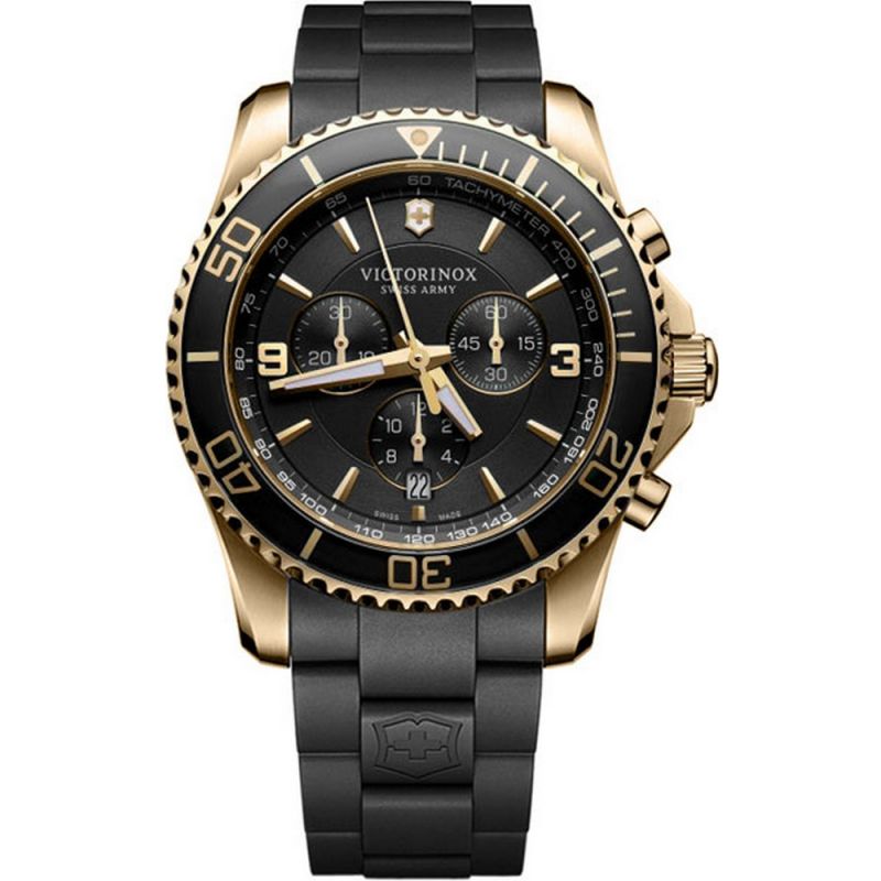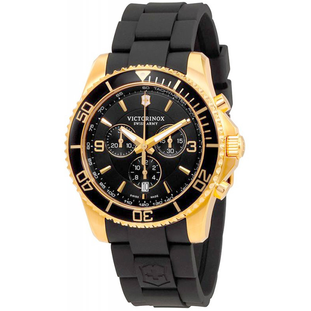 Швейцарський чоловічий годинник з хронографом Victorinox Swiss Army MAVERICK Chrono - грамотне поєднання спортивного дизайну з оригінальними елегантними елементами. Представлену модель вигідно виділяє односпрямовано обертовий безель, відполіровані годинні мітки і цифри, а також захищений заводний вал.