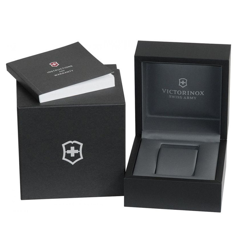 Цей чоловічий годинник під кришкою оснащений швейцарським аналоговим кварцем Ronda калібру 5030.D з функцією хронографа. Відповідно до загальноприйнятих світових вимог і внутрішніх стандартів Victorinox Swiss Army забезпечує свій кварц елементами живлення без ртуті.